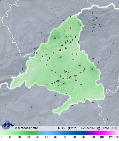 | Actualizado: 18:29 UTC | 12,4°C 89% | 16,3 °C / 97% | | 9,6°C / 76% | | 4 km/h ENE | | 20 km/h | | 1.026 hPa |