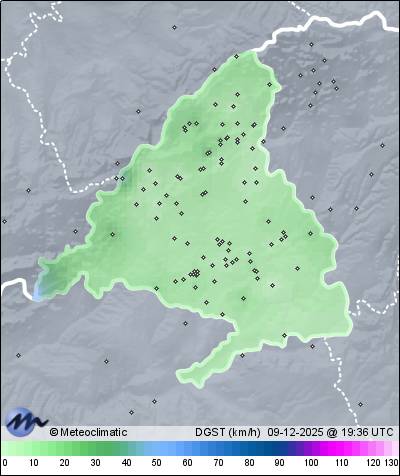 | Actualizado: 05:56 UTC | 5,9°C 89% | 7,1 °C / 95% | | 3,0°C / 80% | | 27 km/h E | | 45 km/h | | 1.022 hPa |