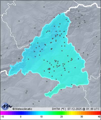 | Actualizado: 00:16 UTC | 8,7°C 95% | 8,9 °C / 95% |  | | 8,7°C / 95% | | Calma | | 3 km/h | | 1.022 hPa |