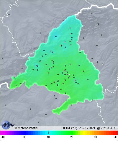| 28-05-2021 | | | Máx. | Mín. | | | Temperatura | 22,2 | 11,7 | °C | | Humedad | 96 | 55 | % | | Viento | 11 | n/a | km/h | | Presión | 1.017 | 1.014 | hPa | | Precipitación | 4,6 | mm |