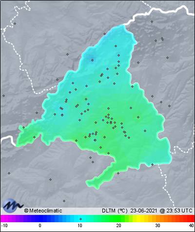 | 23-06-2021 | | | Máx. | Mín. | | | Temperatura | 22,8 | 13,6 | °C | | Humedad | 80 | 39 | % | | Precipitación | 0,0 | mm |