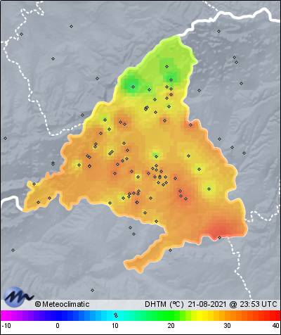 | 21-08-2021 | | | Máx. | Mín. | | | Temperatura | 35,0 | 19,7 | °C | | Humedad | 40 | 13 | % | | Viento | 25 | n/a | km/h | | Presión | 1.017 | 1.010 | hPa | | Precipitación | 0,0 | mm |