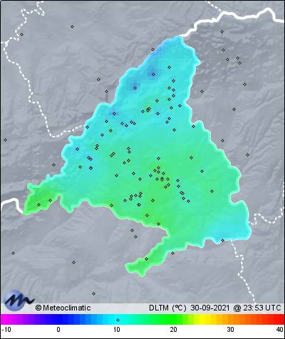| 30-09-2021 | | | Máx. | Mín. | | | Temperatura | 21,7 | 8,3 | °C | | Humedad | 93 | 38 | % | | Viento | 10 | n/a | km/h | | Presión | 1.025 | 1.021 | hPa | | Precipitación | 0,0 | mm |
