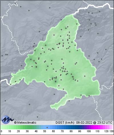 | 08-02-2022 | | | Máx. | Mín. | | | Temperatura | 17,7 | 4,0 | °C | | Humedad | 71 | 31 | % | | Viento | 32 | n/a | km/h | | Presión | 1.031 | 1.028 | hPa | | Precipitación | 0,0 | mm |