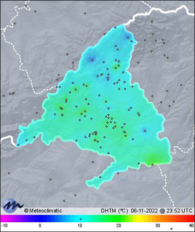 | 06-11-2022 | | | Máx. | Mín. | | | Temperatura | 18,6 | -0,8 | °C | | Humedad | 96 | 44 | % | | Viento | 3 | n/a | km/h | | Presión | 1.023 | 1.019 | hPa | | Precipitación | 0,0 | mm |