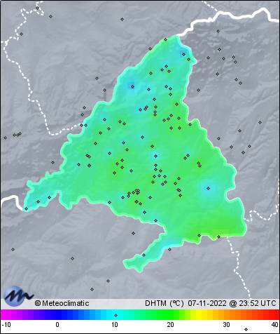 | 07-11-2022 | | | Máx. | Mín. | | | Temperatura | 12,9 | 1,2 | °C | | Humedad | 94 | 56 | % | | Viento | 5 | n/a | km/h | | Precipitación | 0,0 | mm |