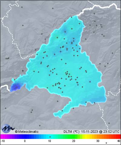 | 15-11-2023 | | | Máx. | Mín. | | | Temperatura | 17,0 | 9,9 | °C | | Humedad | 95 | 76 | % | | Viento | 13 | n/a | km/h | | Presión | 1.030 | 1.027 | hPa | | Precipitación | 0,0 | mm |