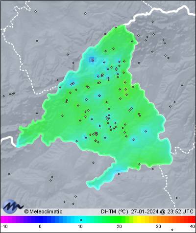 | 27-01-2024 | | | Máx. | Mín. | | | Temperatura | 17,9 | 10,4 | °C | | Humedad | 67 | 44 | % | | Viento | 18 | n/a | km/h | | Presión | 1.030 | 1.026 | hPa | | Precipitación | 0,0 | mm |