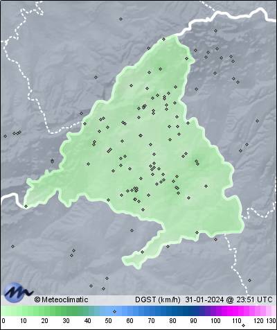 | 31-01-2024 | | | Máx. | Mín. | | | Temperatura | 15,7 | -1,9 | °C | | Humedad | 93 | 39 | % | | Viento | 8 | n/a | km/h | | Precipitación | 0,0 | mm |