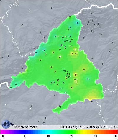 | 26-09-2024 | | | Máx. | Mín. | | | Temperatura | 21,6 | 17,4 | °C | | Humedad | 90 | 61 | % | | Precipitación | 0,0 | mm |