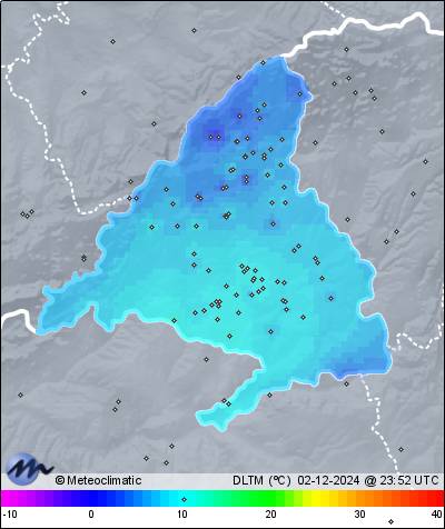| 02-12-2024 | | | Máx. | Mín. | | | Temperatura | 16,0 | 9,8 | °C | | Humedad | 90 | 70 | % | | Viento | 15 | n/a | km/h | | Precipitación | 0,6 | mm |
