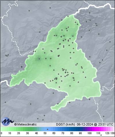 | 06-12-2024 | | | Máx. | Mín. | | | Temperatura | 13,6 | 3,9 | °C | | Humedad | 94 | 76 | % | | Viento | 8 | n/a | km/h | | Precipitación | 0,0 | mm |