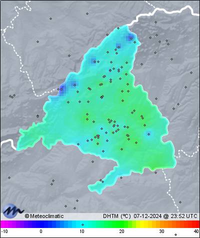| 07-12-2024 | | | Máx. | Mín. | | | Temperatura | 9,9 | 2,3 | °C | | Humedad | 94 | 66 | % | | Viento | 40 | n/a | km/h | | Precipitación | 0,0 | mm |