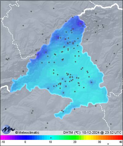 | 10-12-2024 | | | Máx. | Mín. | | | Temperatura | 8,8 | -2,1 | °C | | Humedad | 88 | 46 | % | | Viento | 12 | n/a | km/h | | Presión | 1.015 | 1.013 | hPa | | Precipitación | 0,0 | mm |