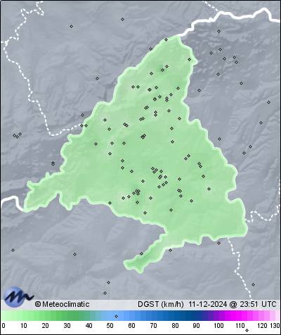 | 11-12-2024 | | | Máx. | Mín. | | | Temperatura | 5,0 | 1,3 | °C | | Humedad | 93 | 59 | % | | Viento | 17 | n/a | km/h | | Presión | 1.023 | 1.019 | hPa |