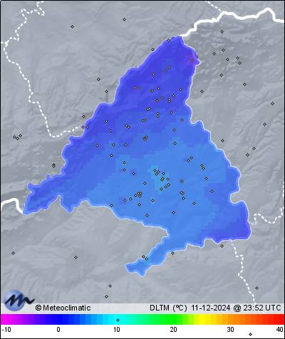| 11-12-2024 | | | Máx. | Mín. | | | Temperatura | 4,8 | 3,1 | °C | | Humedad | 76 | 64 | % | | Viento | 5 | n/a | km/h | | Presión | 1.023 | 1.020 | hPa | | Precipitación | 0,0 | mm |