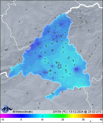 | 13-12-2024 | | | Máx. | Mín. | | | Temperatura | 8,2 | -1,5 | °C | | Humedad | 98 | 78 | % | | Viento | 4 | n/a | km/h | | Presión | 1.028 | 1.020 | hPa |