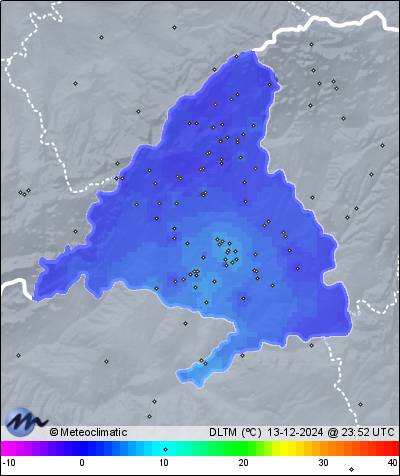 | 13-12-2024 | | | Máx. | Mín. | | | Temperatura | 4,0 | 1,0 | °C | | Humedad | 98 | 83 | % | | Viento | 15 | n/a | km/h | | Presión | 1.024 | 1.016 | hPa | | Precipitación | 3,8 | mm |