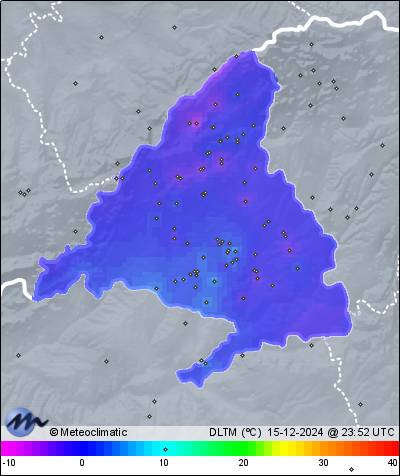 | 15-12-2024 | | | Máx. | Mín. | | | Temperatura | 10,8 | -1,5 | °C | | Humedad | 95 | 56 | % | | Viento | 14 | n/a | km/h | | Presión | 1.040 | 1.036 | hPa | | Precipitación | 0,2 | mm |