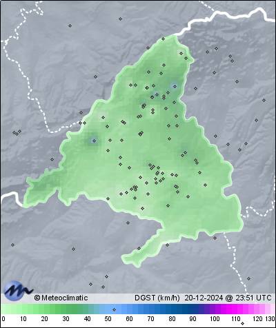 | 20-12-2024 | | | Máx. | Mín. | | | Temperatura | 10,1 | -4,7 | °C | | Humedad | 94 | 43 | % | | Viento | 24 | n/a | km/h | | Presión | 1.038 | 1.030 | hPa |