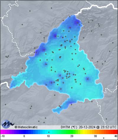 | 20-12-2024 | | | Máx. | Mín. | | | Temperatura | 9,5 | 2,2 | °C | | Humedad | 77 | 53 | % | | Precipitación | 0,0 | mm |