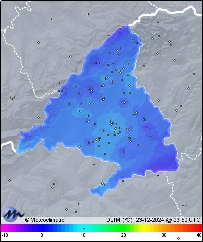 | 23-12-2024 | | | Máx. | Mín. | | | Temperatura | 6,8 | 5,2 | °C | | Humedad | 67 | 61 | % | | Viento | 15 | n/a | km/h | | Presión | 1.022 | 1.020 | hPa | | Precipitación | 0,0 | mm |