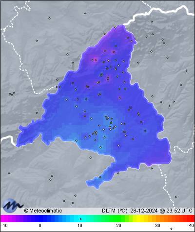 | 28-12-2024 | | | Máx. | Mín. | | | Temperatura | 10,4 | 2,6 | °C | | Humedad | 87 | 63 | % | | Precipitación | 0,0 | mm |