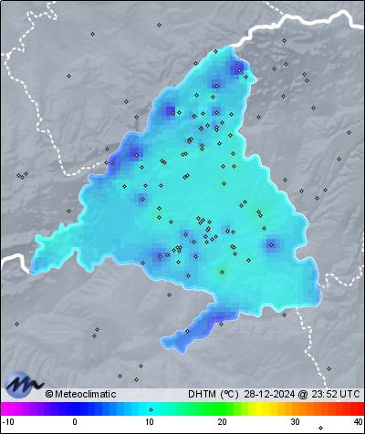 | 28-12-2024 | | | Máx. | Mín. | | | Temperatura | 10,4 | 2,6 | °C | | Humedad | 87 | 63 | % | | Precipitación | 0,0 | mm |