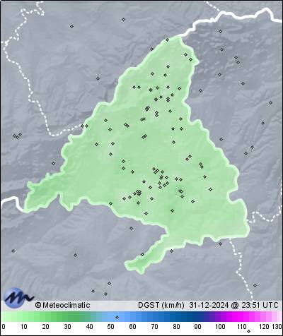 | 31-12-2024 | | | Máx. | Mín. | | | Temperatura | 12,1 | -4,4 | °C | | Humedad | 96 | 49 | % | | Viento | 11 | n/a | km/h | | Presión | 1.035 | 1.027 | hPa | | Precipitación | 0,0 | mm |