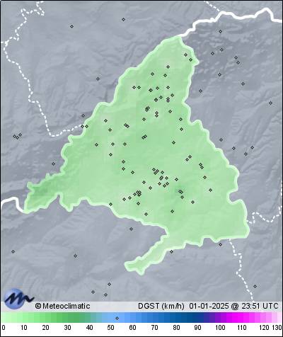 | 01-01-2025 | | | Máx. | Mín. | | | Temperatura | 8,1 | -2,9 | °C | | Humedad | 96 | 61 | % | | Viento | 11 | n/a | km/h | | Presión | 1.029 | 1.026 | hPa | | Precipitación | 0,0 | mm |