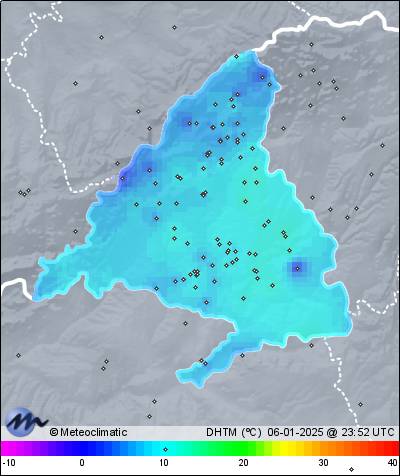 | 06-01-2025 | | | Máx. | Mín. | | | Temperatura | 9,5 | 6,7 | °C | | Humedad | 92 | 60 | % | | Precipitación | 1,2 | mm |