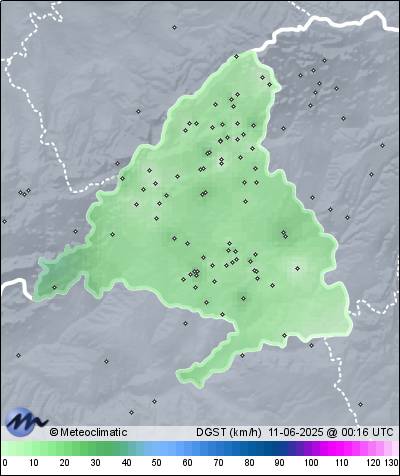 10-06-2025 | | Máx. | Mín. | | Temperatura | 30,3 | 11,0 | °C | Humedad | 90 | 32 | % | Viento | 11 | n/a | km/h | Presión | 1.021 | 1.017 | hPa | Precipitación | 0,0 | mm |