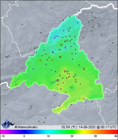 13-06-2025 | | Máx. | Mín. | | Temperatura | 29,7 | 15,5 | °C | Viento | 16 | n/a | km/h | Presión | 1.017 | 1.014 | hPa | Precipitación | 0,0 | mm |