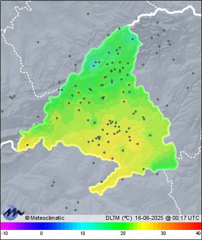 15-06-2025 | | Máx. | Mín. | | Temperatura | 36,1 | 18,6 | °C | Humedad | 66 | 22 | % | Viento | 15 | n/a | km/h | Presión | 1.020 | 1.016 | hPa |