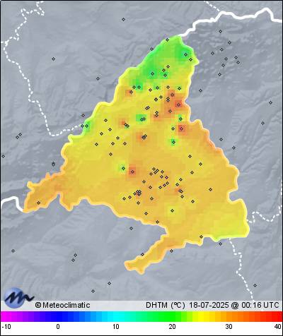 | 17-07-2025 | | | Máx. | Mín. | | | Temperatura | 36,9 | 24,3 | °C | | Humedad | 43 | 17 | % | | Precipitación | 0,0 | mm |