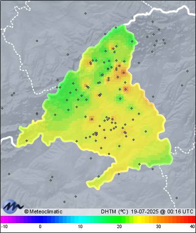 | 18-07-2025 | | | Máx. | Mín. | | | Temperatura | 30,4 | 21,5 | °C | | Humedad | 37 | 13 | % | | Viento | 40 | n/a | km/h | | Precipitación | 0,0 | mm |