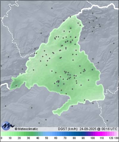 23-09-2025 | | Máx. | Mín. | | Temperatura | 21,5 | 8,9 | °C | Viento | 22 | n/a | km/h | Presión | 1.020 | 1.014 | hPa | Precipitación | 0,0 | mm |