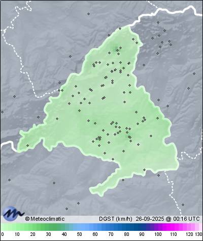 25-09-2025 | | Máx. | Mín. | | Temperatura | 26,9 | 0,8 | °C | Humedad | 82 | 22 | % | Viento | 0 | n/a | km/h | Presión | 1.016 | 1.012 | hPa |