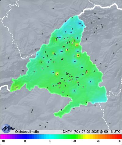 26-09-2025 | | Máx. | Mín. | | Temperatura | 25,7 | 9,7 | °C | Viento | 22 | n/a | km/h | Presión | 1.020 | 1.012 | hPa | Precipitación | 0,0 | mm |