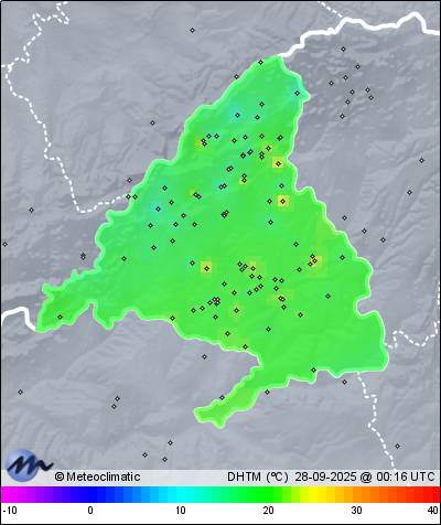 27-09-2025 | | Máx. | Mín. | | Temperatura | 24,0 | 11,9 | °C | Humedad | 46 | 31 | % | Precipitación | 0,0 | mm |