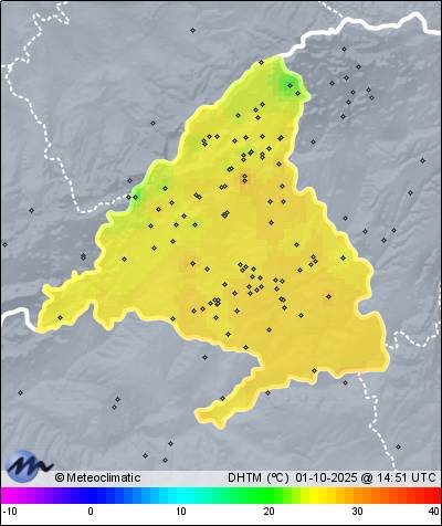Actualizado: 13:13 UTC | 22,6°C 41% | 24,5 °C / 92% | 7,2°C / 39% | | 4 km/h NNW | 18 km/h | 1.025 hPa |