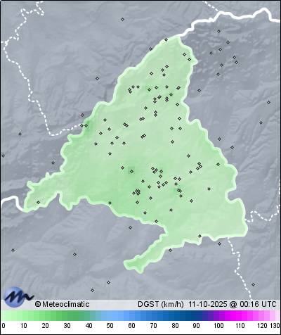 10-10-2025 | | Máx. | Mín. | | Temperatura | 19,6 | 4,5 | °C | Humedad | 93 | 48 | % | Viento | 17 | n/a | km/h | Presión | 1.030 | 1.026 | hPa | Precipitación | 0,0 | mm |