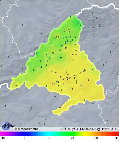 Actualizado: 12:13 UTC | 19,3°C 56% | 20,5 °C / 99% | 7,3°C / 52% | | Calma | 2 km/h | 1.023 hPa |