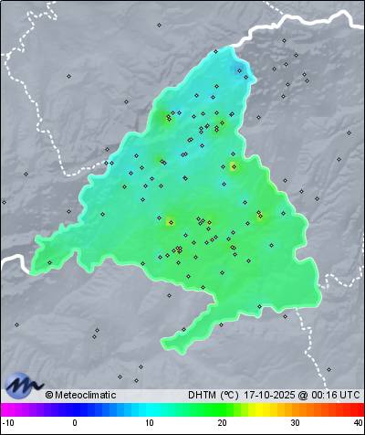 Actualizado: 22:15 UTC | 10,7°C 75% | 10,7 °C / 75% |  | 10,2°C / 73% | | Calma | 0 km/h | 1.016 hPa |