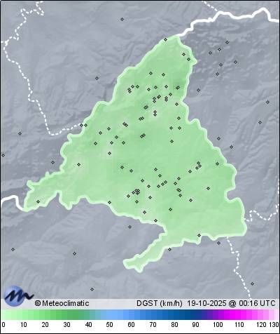 18-10-2025 | | Máx. | Mín. | | Temperatura | 19,6 | 3,9 | °C | Humedad | 94 | 46 | % | Viento | 5 | n/a | km/h | Precipitación | 0,0 | mm |