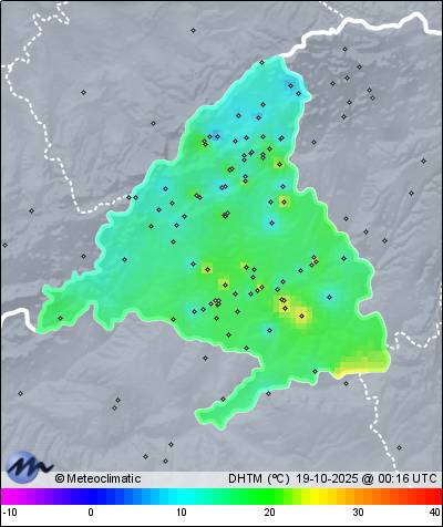 18-10-2025 | | Máx. | Mín. | | Temperatura | 19,6 | 3,9 | °C | Humedad | 94 | 46 | % | Viento | 5 | n/a | km/h | Precipitación | 0,0 | mm |