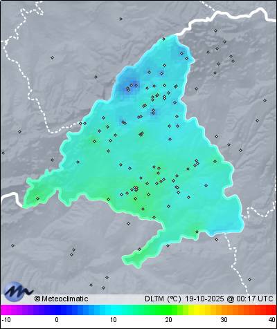 18-10-2025 | | Máx. | Mín. | | Temperatura | 21,6 | 12,3 | °C | Humedad | 72 | 32 | % | Viento | 16 | n/a | km/h | Precipitación | 0,0 | mm |