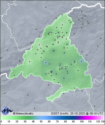 | Actualizado: 20:49 UTC | 14,5°C 88% | 21,9 °C / 95% | | 10,3°C / 55% | | Calma | | 18 km/h | | 1.010 hPa |