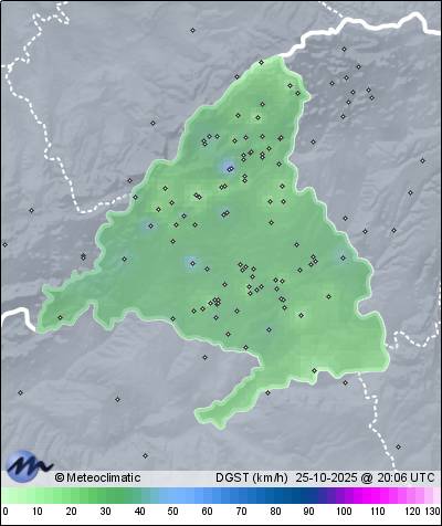 | Actualizado: 09:13 UTC | 17,5°C 82% | 19,1 °C / 93% | | 14,1°C / 76% | | 2 km/h ENE | | 5 km/h | | 1.017 hPa |
