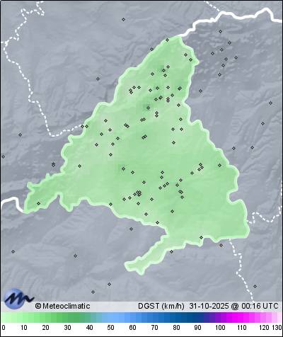 | 30-10-2025 |  |  | Máx. | Mín. |  |  | Temperatura | 12,6 | 8,5 | °C |  | Humedad | 98 | 86 | % |  | Viento | 35 | n/a | km/h |  | Presión | 1.020 | 1.016 | hPa |  | Precipitación | 0,0 | mm |